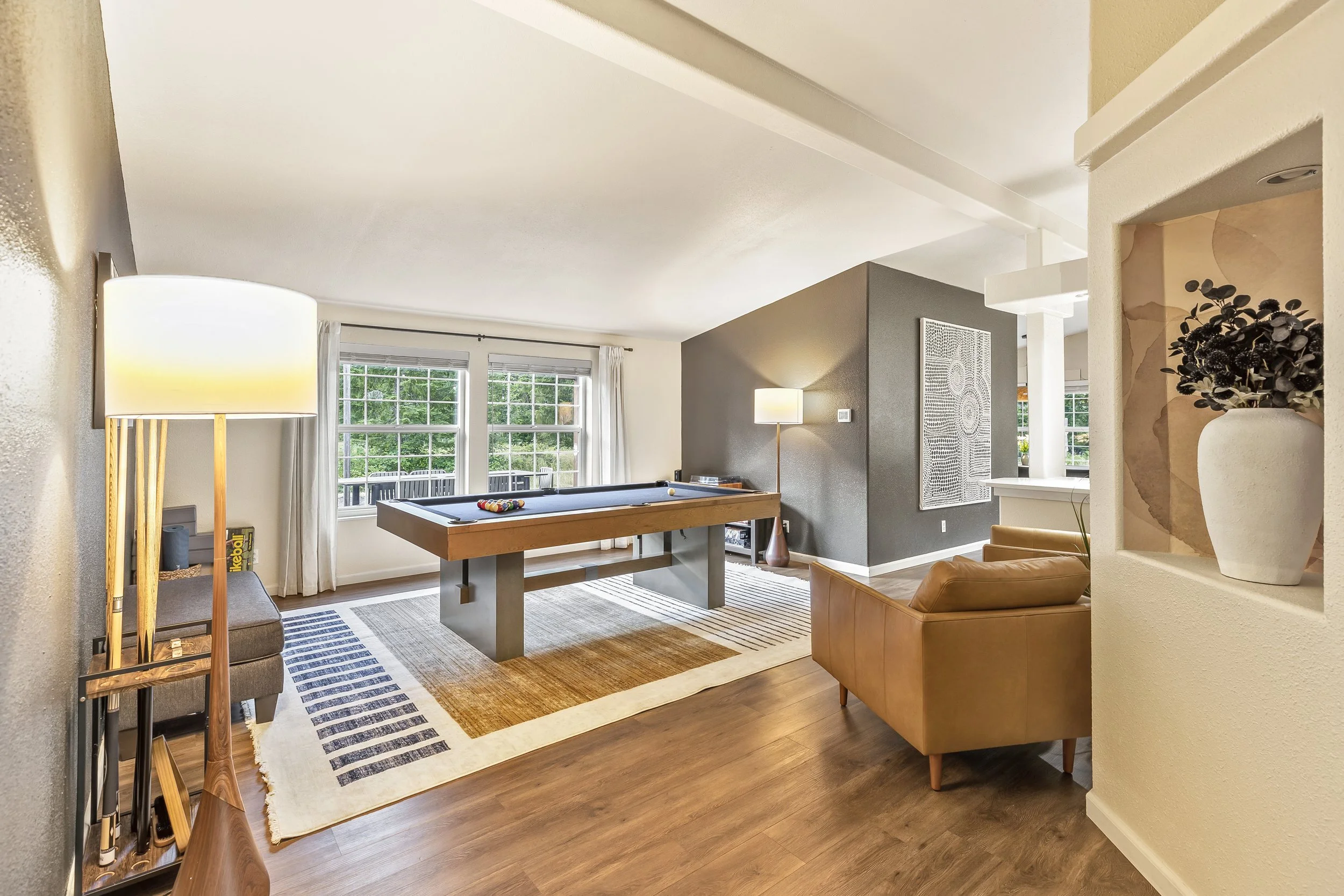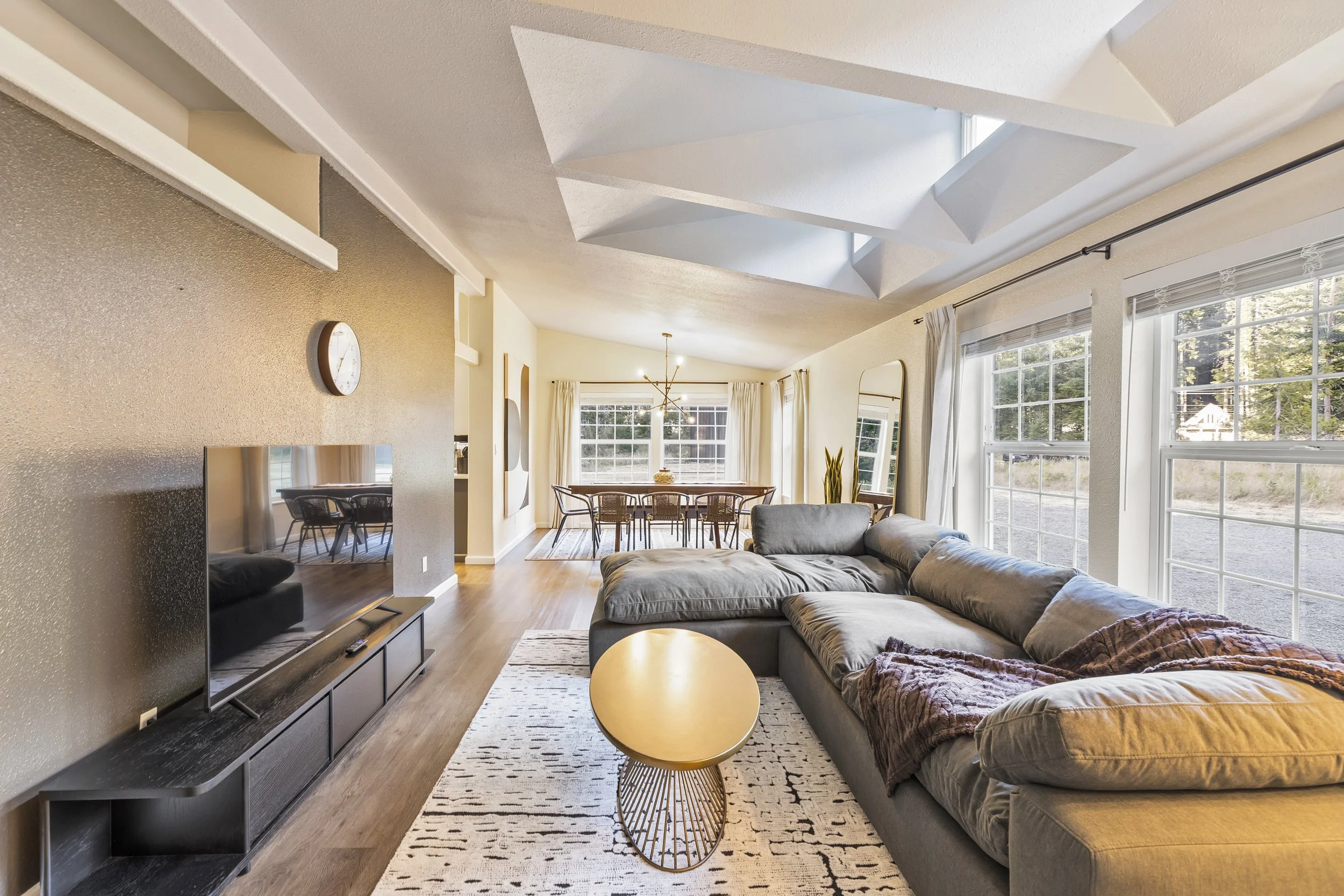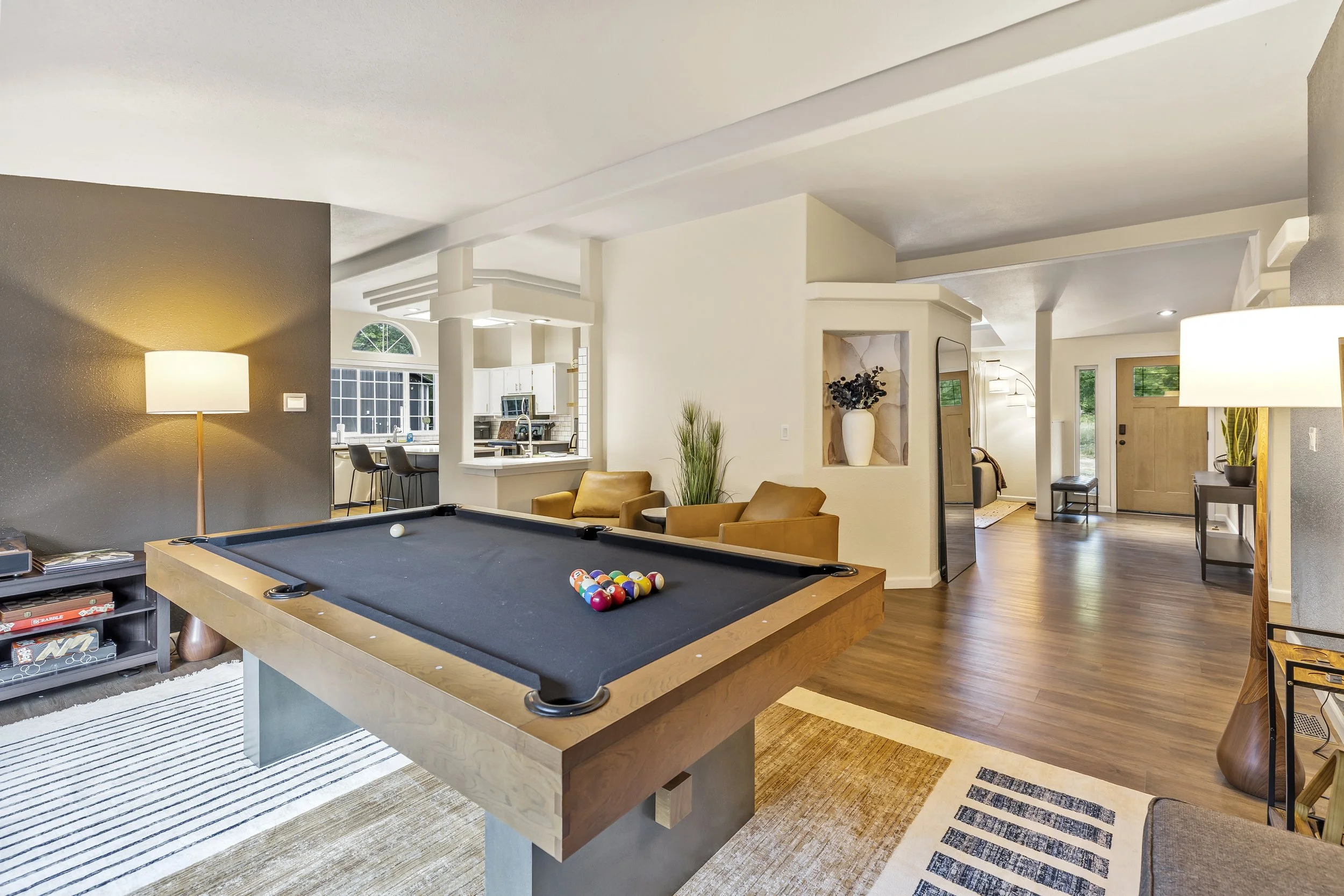 Butter Peak Lodge offers a spacious, well-appointed retreat where you can truly unwind. Relax in the cozy living room with a large smart TV, play billiards in the game room, or spin your favorite vinyl on the record player. The home features three comfortable bedrooms, each with its own smart TV. Plus a quiet study with a Murphy bed and desk for work or reading. Ideal for the modern adventurer seeking comfort and privacy.